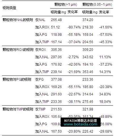 整體上,甲氧芐啶與青霉素G二者互相抑制,青霉素G對甲氧芐啶的抑制作用更明顯,特別是對于大顆粒吸附能力來說.但是,甲氧芐啶的存在卻增強了小顆粒對青霉素G的吸附能力.