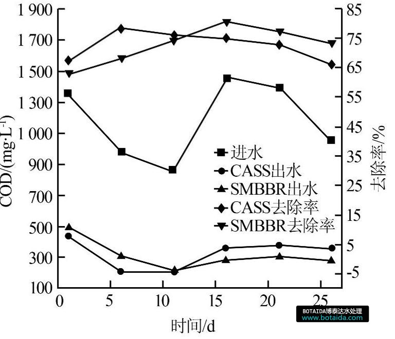 圖2 CASS和SMBBR對(duì)COD的去除效果