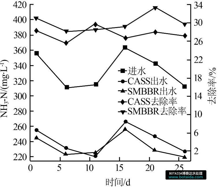 圖3 CASS和SMBBR對(duì)NH3-N的去除效果