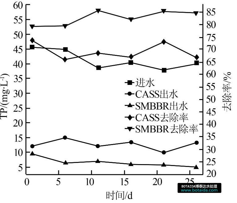圖4 CASS和SMBBR對(duì)TP的去除效果