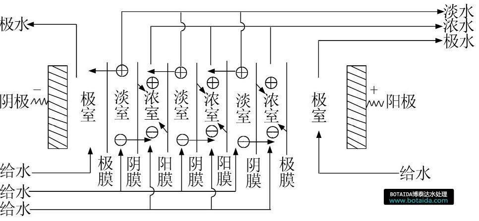電滲析脫鹽裝置主要由預(yù)處理系統(tǒng)和電滲析器組成。