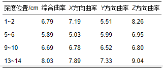 巢湖W1點不同深度樣品的曲率見表 4,其中,17~18 cm深度范圍內(nèi)孔隙度極低,僅為0.01,因此,未進(jìn)行隨機(jī)模擬行走計算曲率.從表 4可以看出,隨深度的變化,綜合曲率變化范圍為5.89~8.03,且均表現(xiàn)為Z方向上曲率相對較大,表明W1點孔隙水中污染物向上的擴(kuò)散作用會受到較大的阻礙.