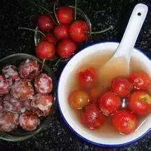 山楂片若干、酸梅50克,加水煮爛,放入白菊花,燒開后撈出,然后放入適量白糖,晾涼飲用??上辰∥浮⒒钛?。