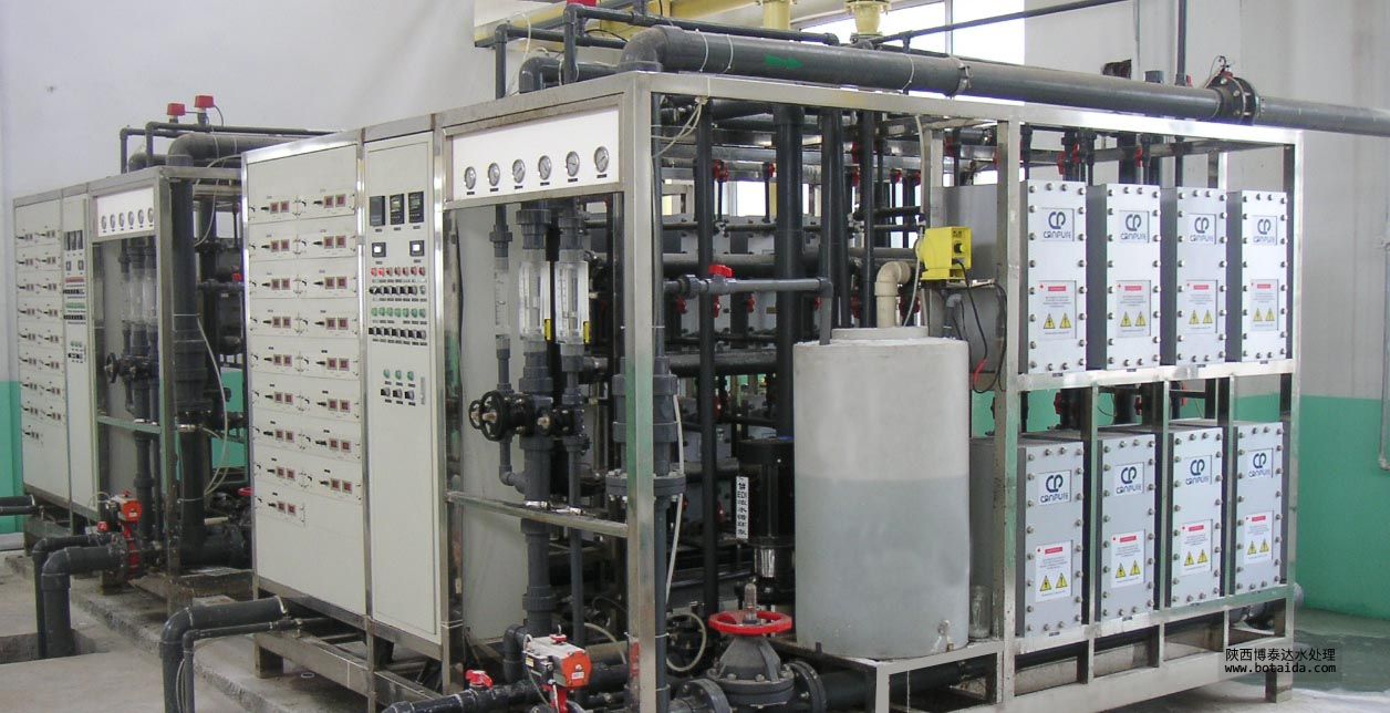 EDI裝置屬于精處理水系統(tǒng),一般多與反滲透(RO)配合使用,組成預(yù)處理、反滲透、EDI裝置的超純水處理系統(tǒng),取代了傳統(tǒng)水處理工藝的混合離子交換設(shè)備。EDI裝置進(jìn)水要求為電阻率為0.025-0.5MΩ·cm,反滲透裝置完全可以滿足要求。EDI裝置可生產(chǎn)電阻率高達(dá)15MΩ·cm以上的超純水。